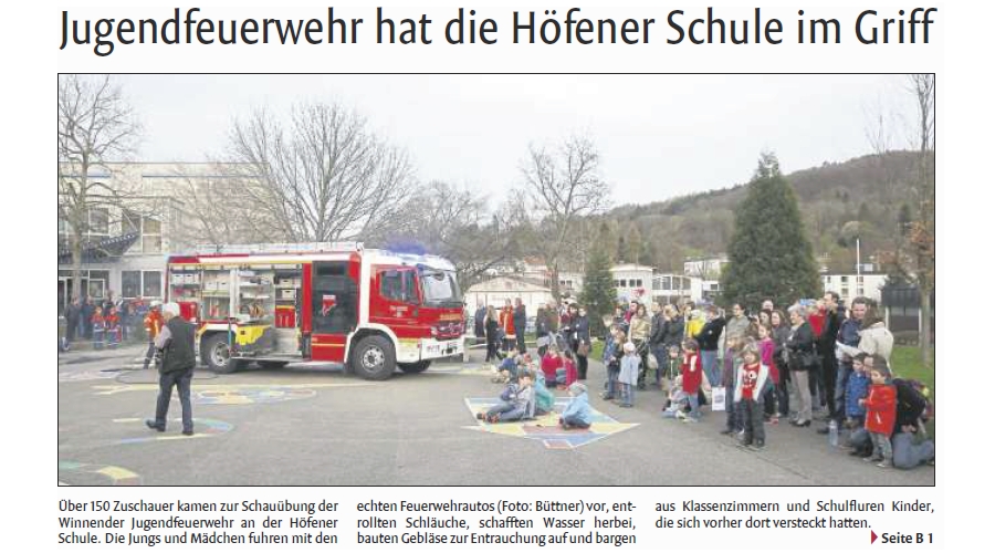 Winnender Zeitung 06.04.2016: Jugendfeuerwehr hat die Höfener Schule im Griff